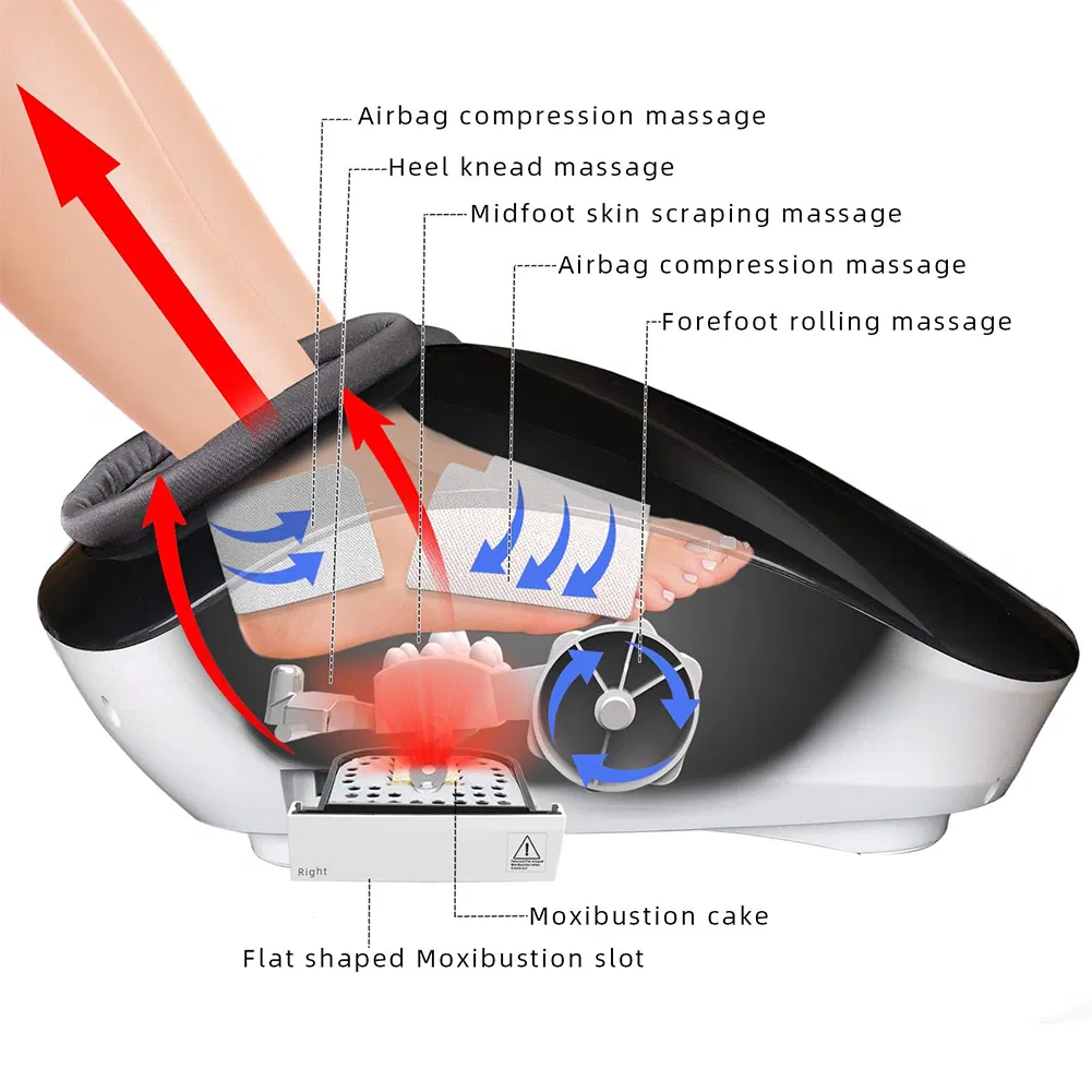 Aoxibustion foot therapy instrument adopts modern high-tech technology combined with acupoint massage of traditional Chinese medicine, which has a long history. In ancient times, there were massage medical activities in China. At that time, when people encountered injuries in their work, they instinctively massaged the pain with manipulation, and they would feel much more comfortable. After a long period of practice, the ancient ancestors realized the role of massage, and gradually developed into a health massage of traditional Chinese medicine. The commonly used techniques are as follows: pressing, rubbing, pushing, holding, kneading, kneading, trembling, beating and so on. The massage function of filio moxibustion foot therapy instrument: according to the acupoint massage method of traditional Chinese medicine, modern technology is used to replace the manual massage with the functions of pushing, kneading, rolling, scraping, topping, kneading, hot compress and so on. It achieves better effect than manual massage. The back of the foot includes massage, rolling massage of forefoot, scraping massage of center of foot, arch massage and massage of heel . Massage process to drive leg movement, deep relaxation muscles.